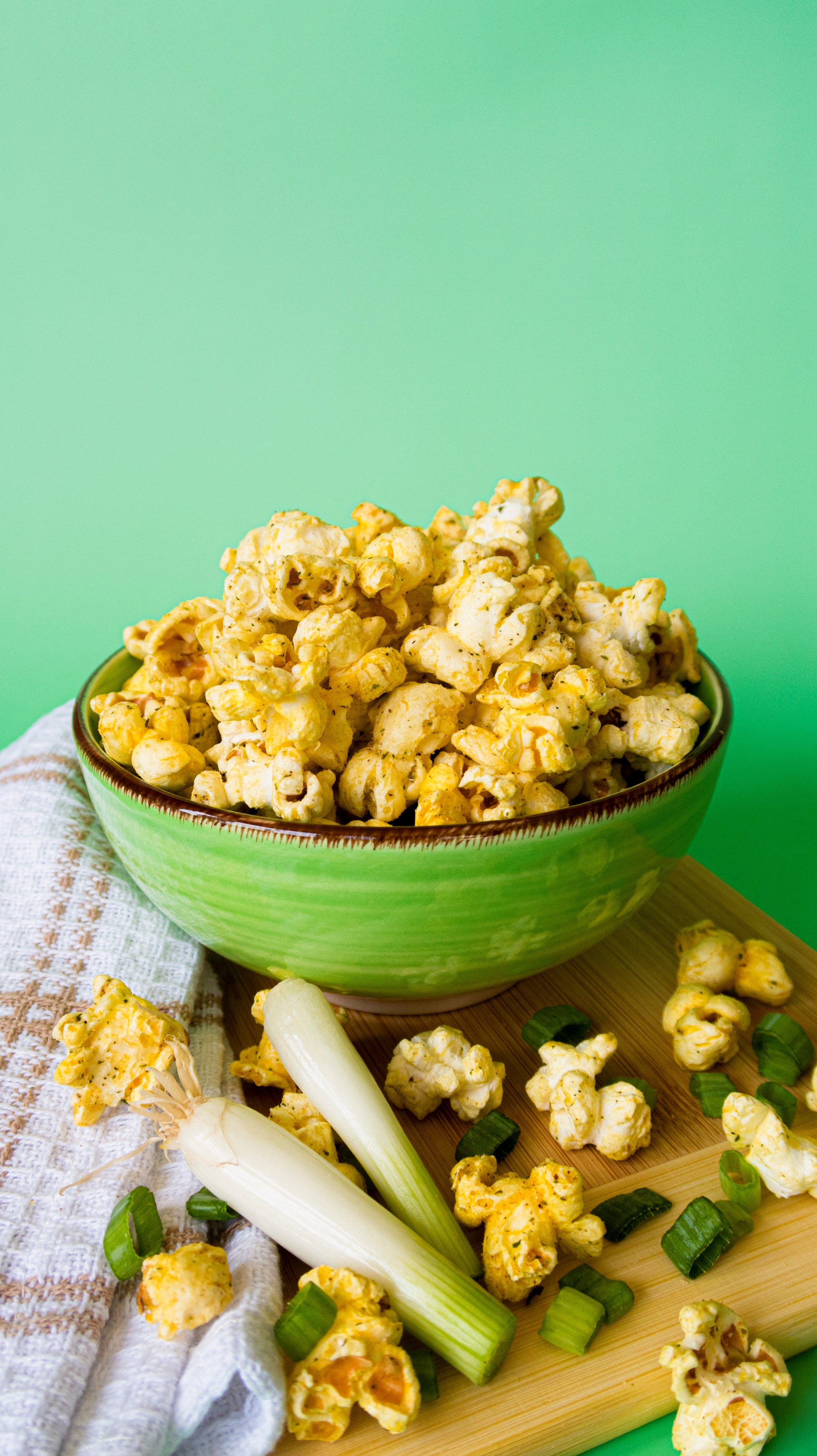 This scallion-infused popcorn brings together the crisp freshness of green onions with the perfect crunch.